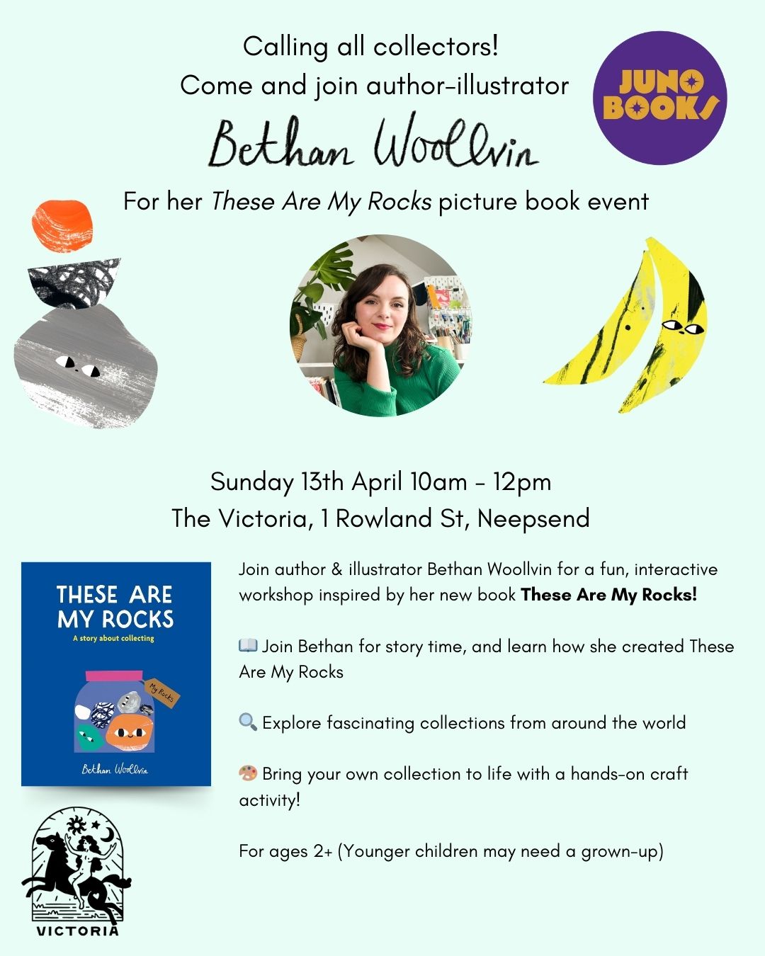 Join Bethan for a fun, interactive story time and workshop inspired by her latest picture book, These Are My Rocks. Learn about how she created the book, explore some fascinating collections from around the world and bring your own collection to life with a hands-on craft activity!