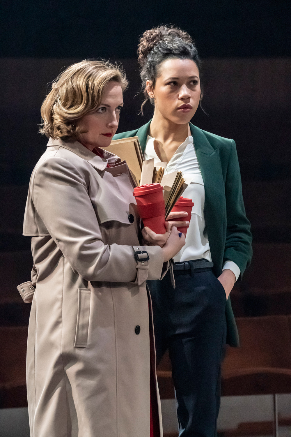 Decorating the auditorium like a modern senate (wood panels, gooseneck microphones and swivel chairs), the minimal stage design invites the audience to be part of the political process as we become privy to the machinations of government.