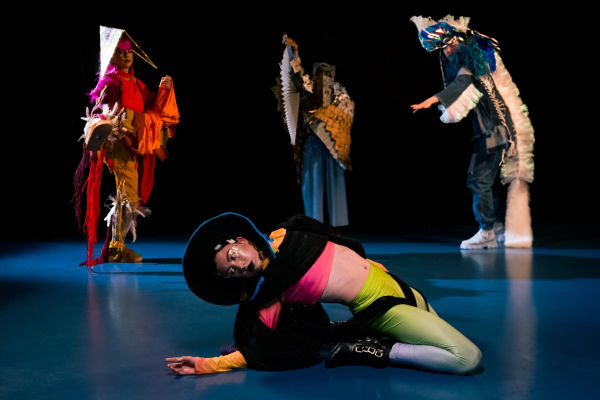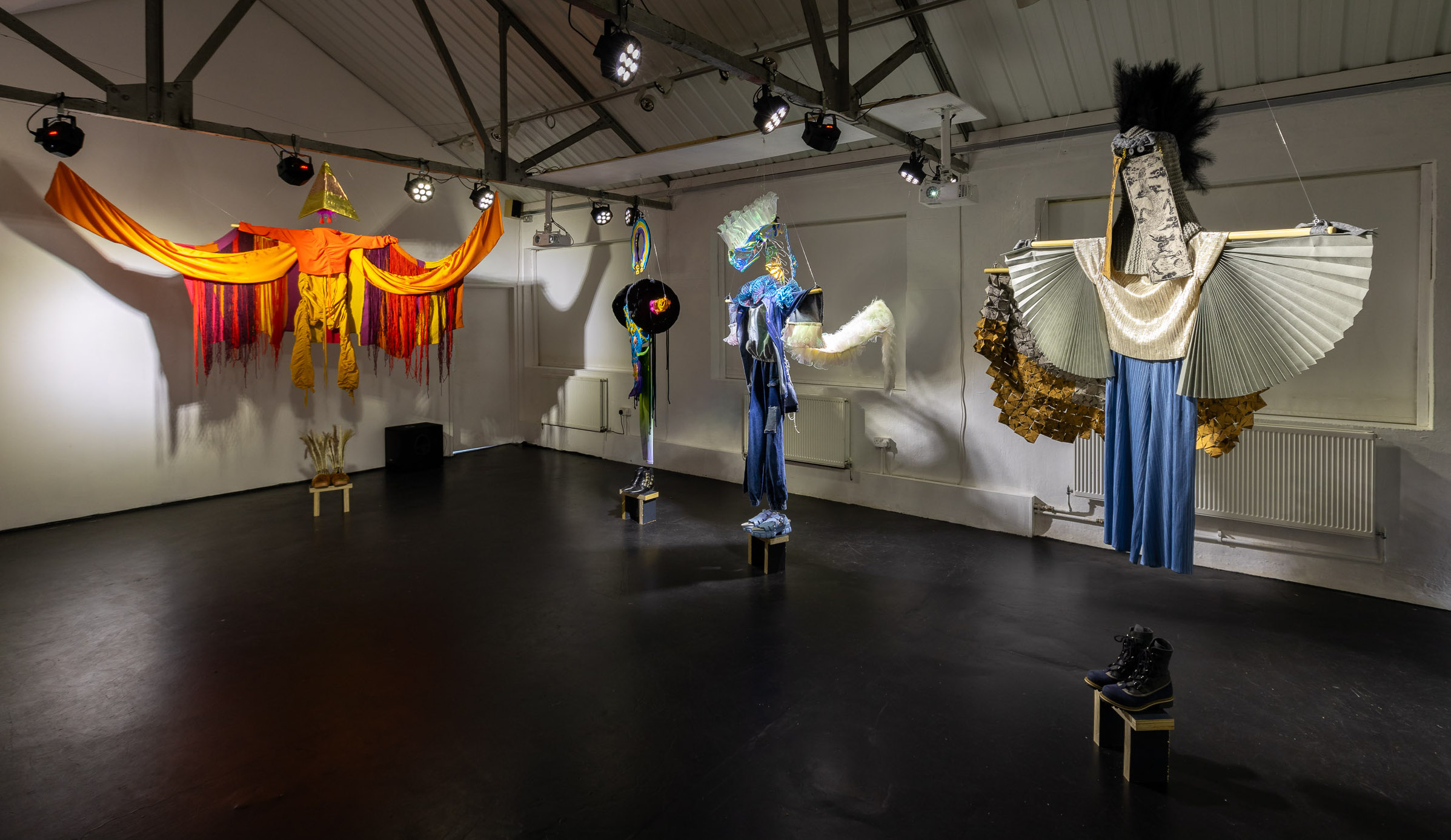 The exhibition encourages questions of what is it to be in between cultures – to have that choice, but also to be unable to cancel out one’s own heritage that can appear to be far away when in reality it's ever present in others' responses and reflections of your presence. Family stories passed down and ones forgotten that may want to be rekindled or retold – to be understood or reinterpreted into a new dance – energetically echo around. It resonates with my own lived experience of being dual/triple heritage – Malaysian Chinese and White English. The characters themselves incorporate different elemental duos: Wok Hei is fire and metal, Hybridity is earth and sky, Lo Ting is earth and water, and the Navigator is air and wind, said to carry a thousand stories in her tortoise-like shell.