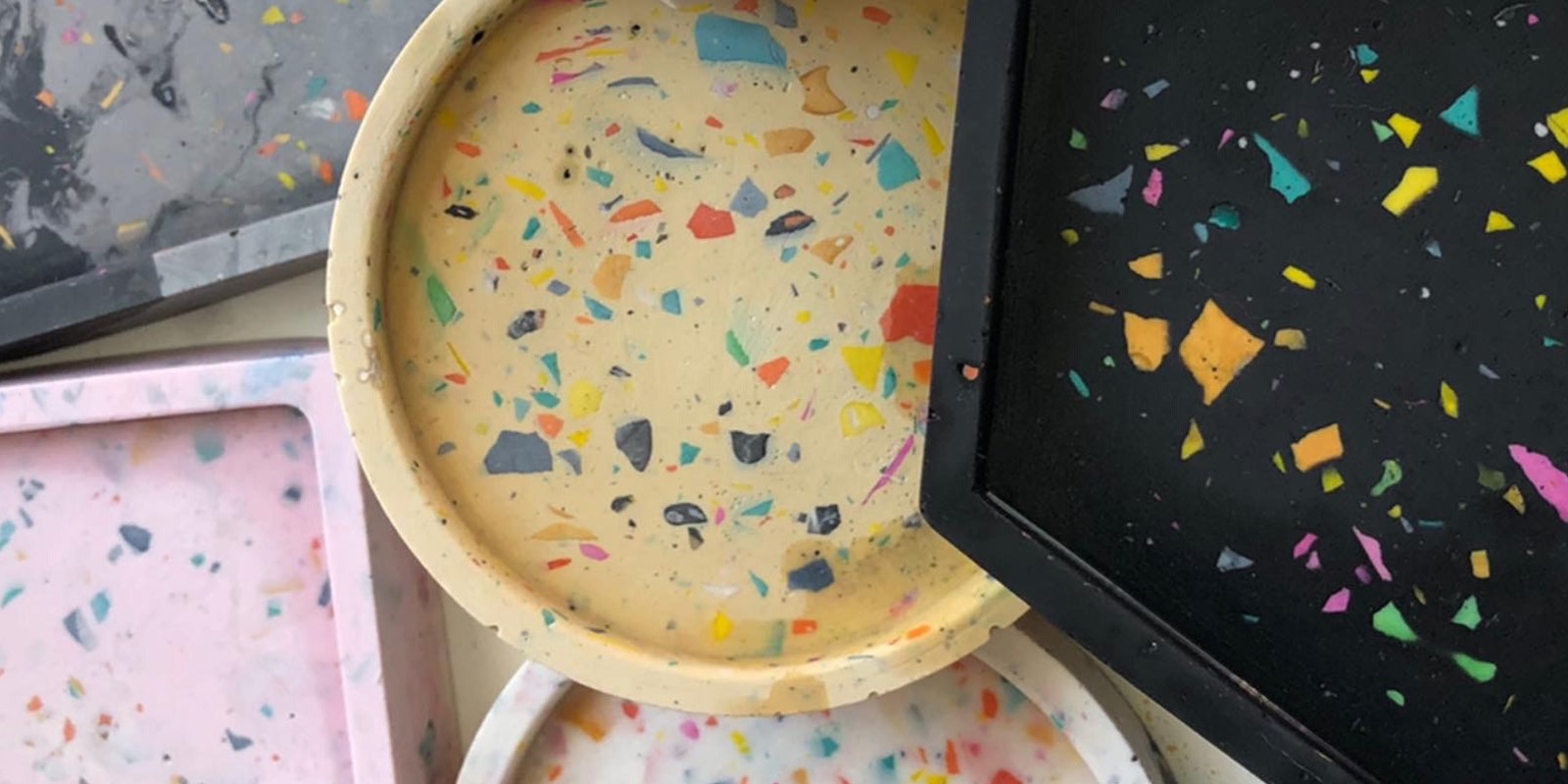 Create your own Jesmonite coaster with artist and maker Kim Searle using a variety of geometric and recycled moulds.