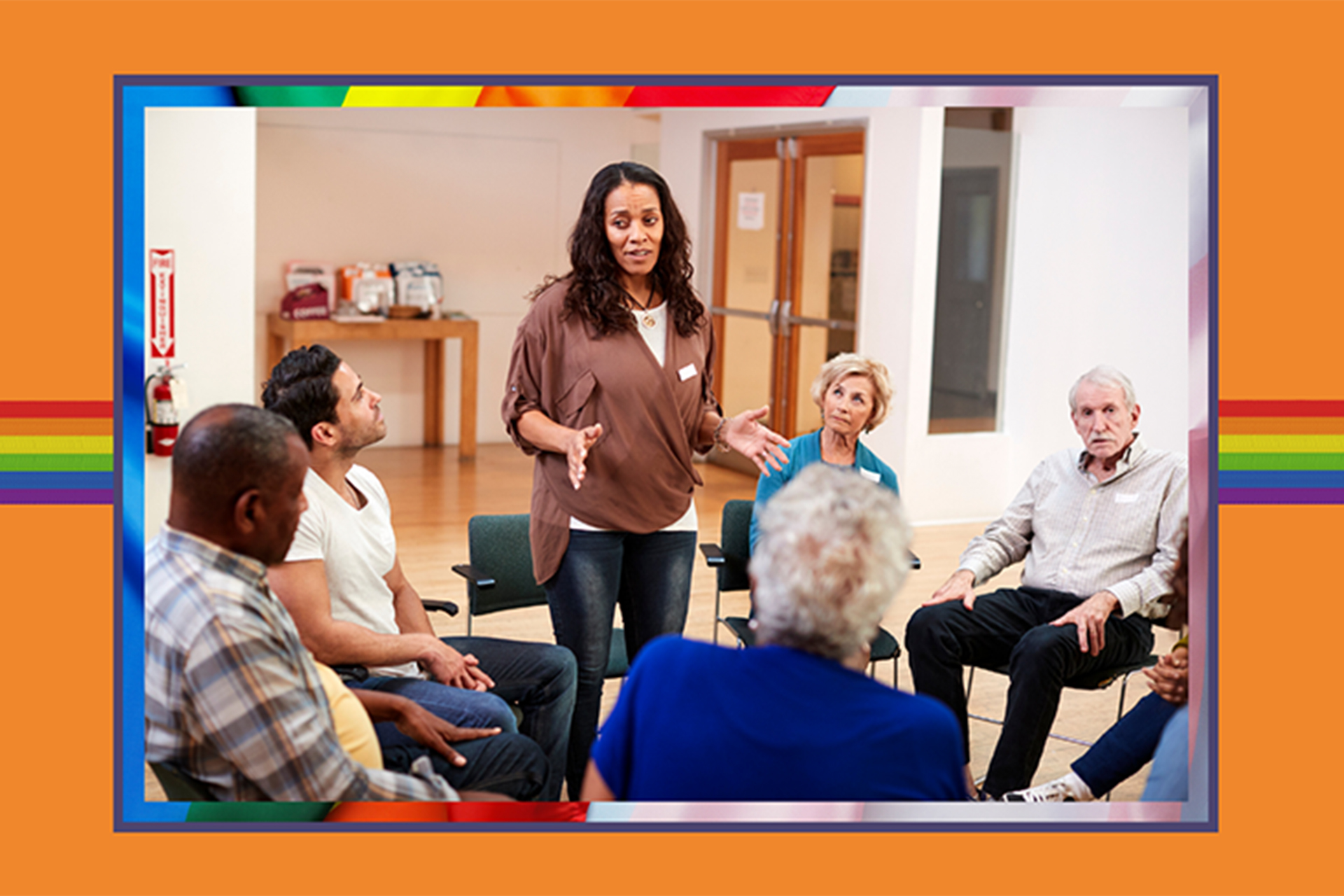 Over 50s group led by people from the LGBT community and held in a safe space.