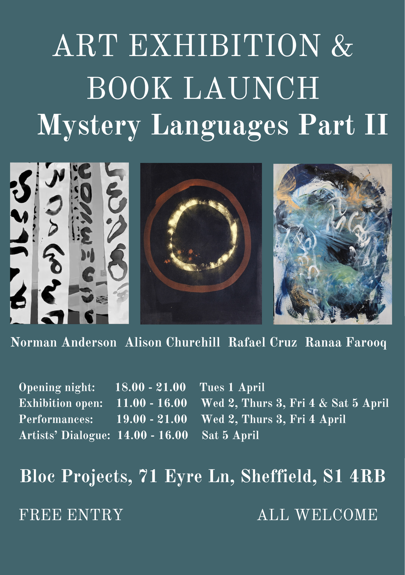 Mystery Languages Part II is a collaboration between Sheffield artists Norman Anderson, Alison Churchill and Ranaa Farooq, and Cambridgeshire-based writer Rafael Cruz.