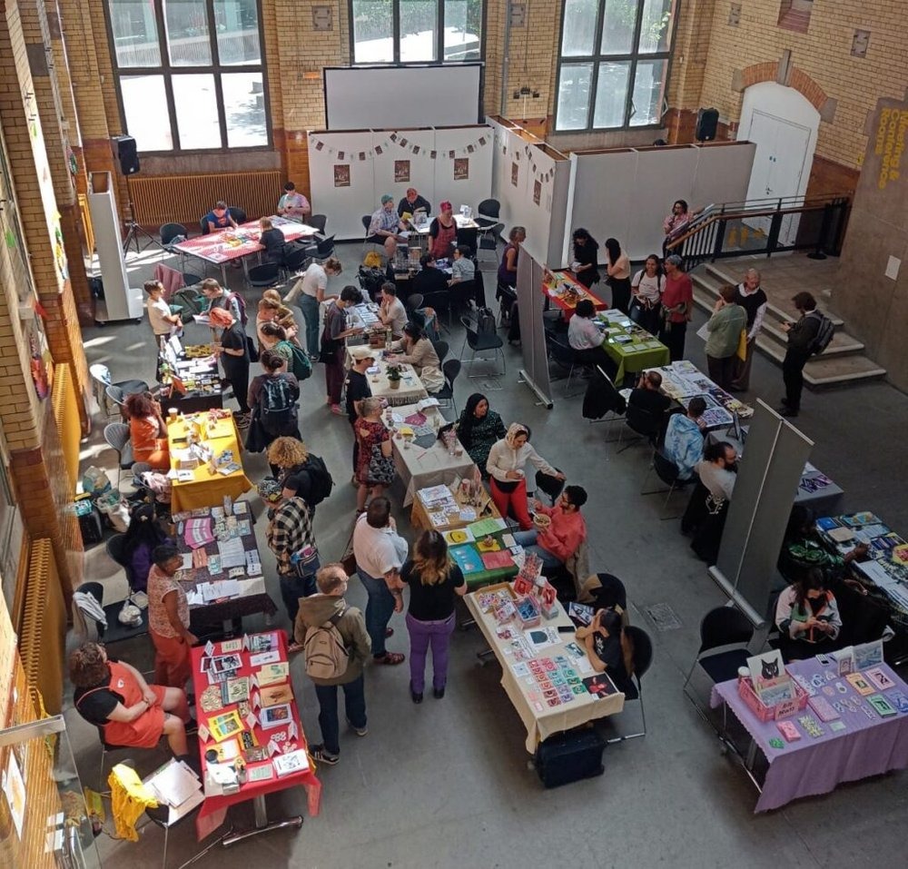 Over Here Zine Fest started in 2018 by a group of Global Majority zine making friends based in Manchester with the aim of building self-sustaining alternative models for publishing, art, activism and collaboration in our communities. The zine fest itself is a non for profit annual event that showcases the work of Black/Asian/POC/Global Majority zine makers, artists, writers and activists.