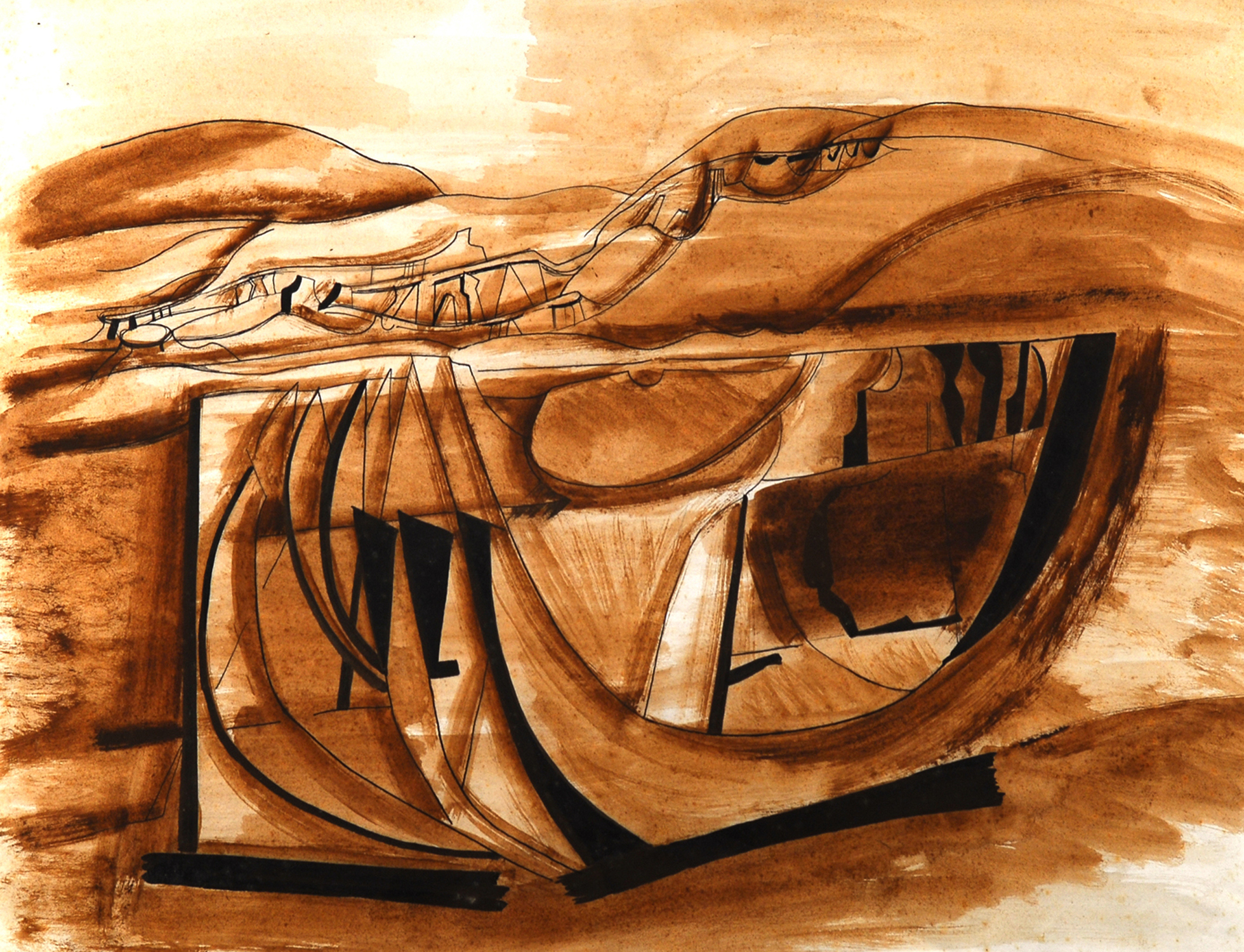 Although hidden away above the Central Library, Graves Gallery is in fact one of the strongest collections of 20th century British art to be found outside London. In the collection displays devoted to showcasing this work, a section charts the role of landscape in the 20th century. One of the most striking works usually to be found here is a painting entitled Glacier Painting (Green and Brown) from 1951 by Wilhelmina Barns-Graham, a Scottish-born artist who came to be associated with the group which gathered in and around St Ives during the wartime and postwar periods. Less well known both during her lifetime and posthumously than her male colleagues, who included the likes of Peter Lanyon, Patrick Heron and Terry Frost, in Graves’s new exhibition Barns-Graham is given the space and opportunity to be reassessed in her own right, with her Glacier Painting forming one of the central works of the exhibition.
