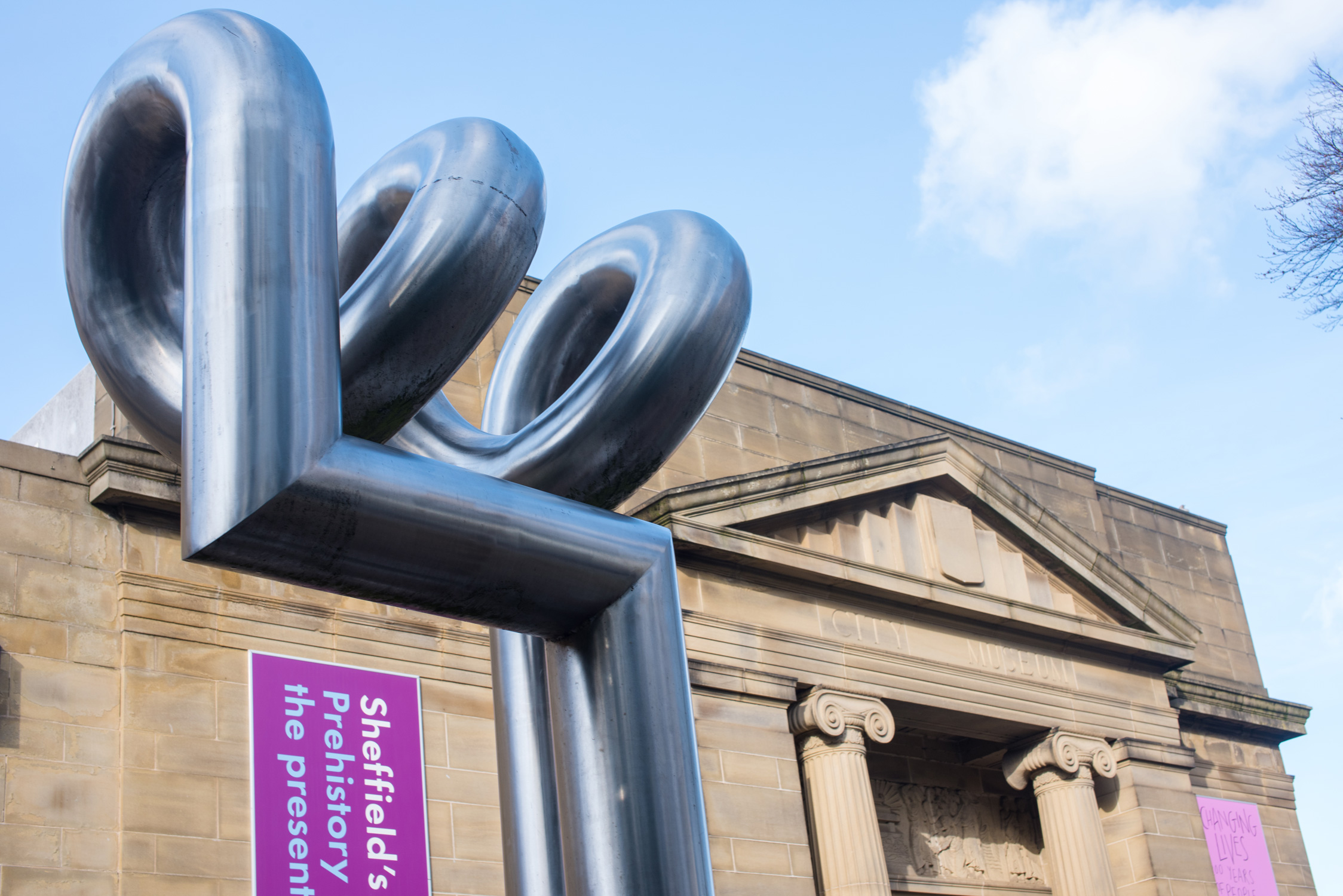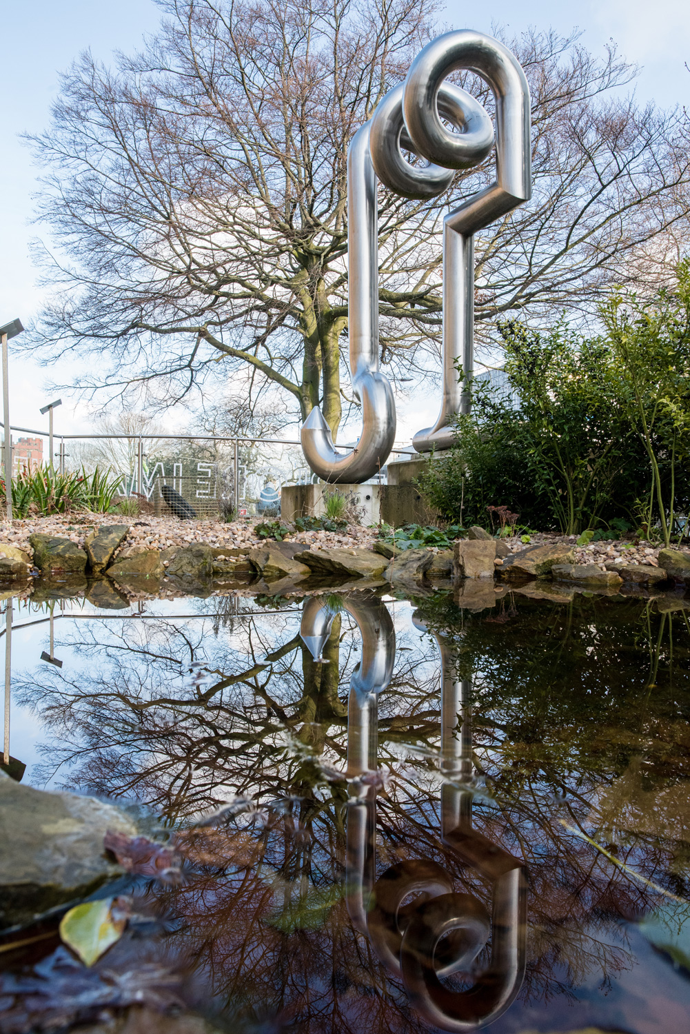 The piece was commissioned by Sheffield’s Children’s Hospital over the road in 1976, where it originally sat in front of the hospital's red brick Tudor end. This iconic work of polished twisted stainless steel tubes is playful and incredibly resilient – the form, flow and mirrored surface strike a harmony with the bustle of traffic on Western Bank and with the many people who must visit the hospital opposite.