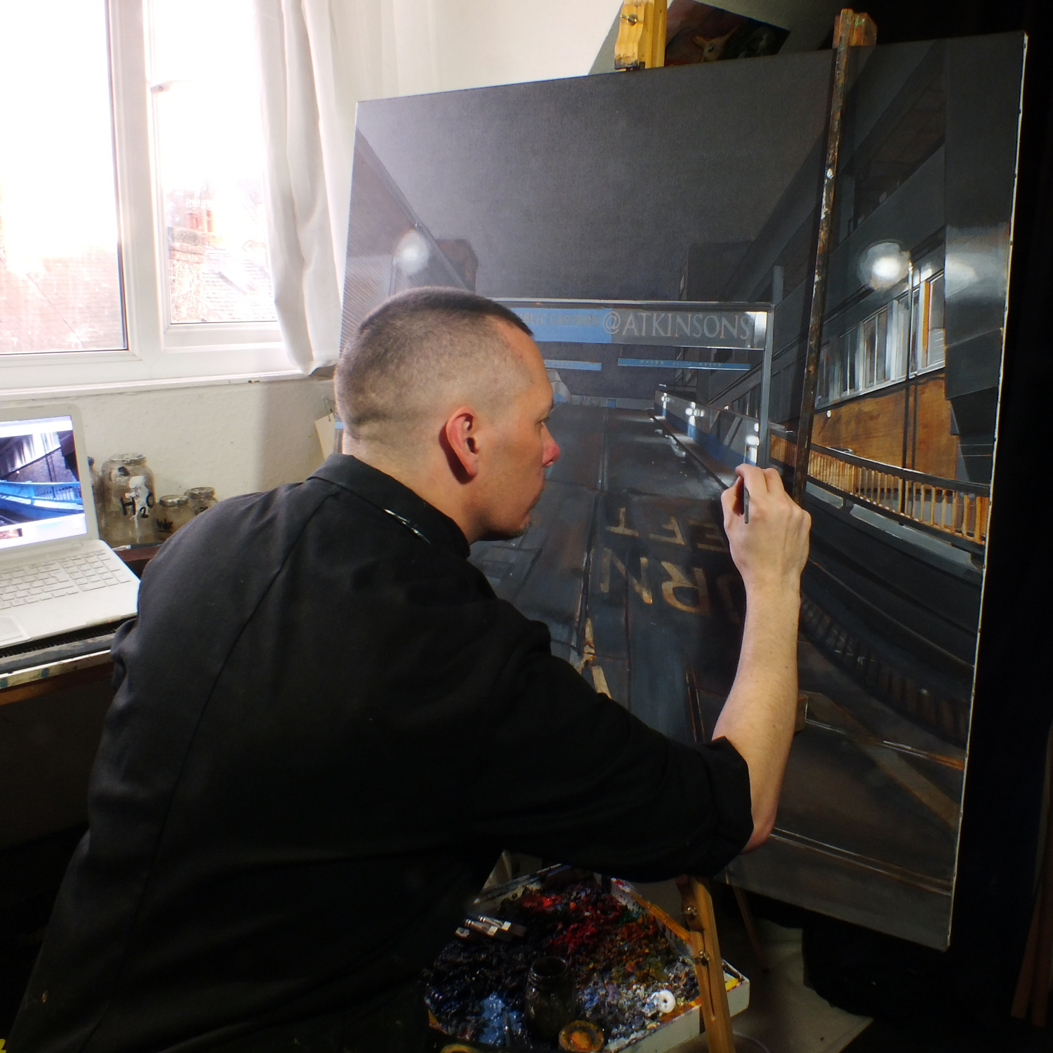 I'd call my style painterly realism, showing a variety of urban cityscapes, scenes and things within the shadows and street lighting of night here in Sheffield. On a first look my work appears photographic but on closer inspection it's way too painterly for the photo-flat finish usually associated with the painting style known as 'photo-realism'. I like that people can see the blobs of paint, the errors and marks made by my hand. You can see that someone's made these paintings as opposed to them being mechanically produced.