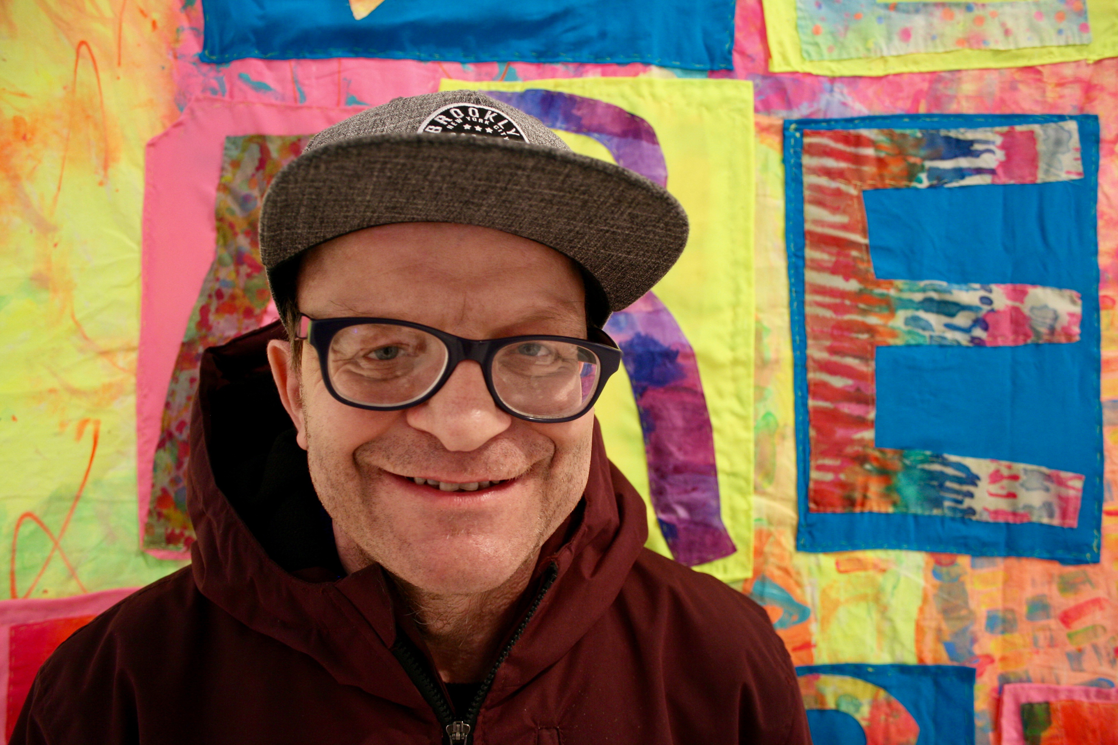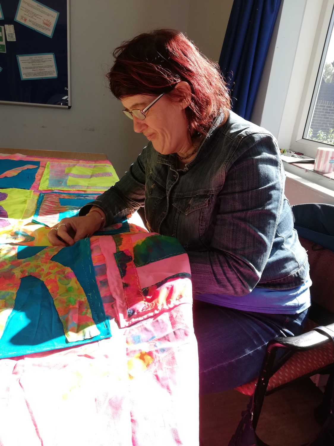 Heather: I create artwork about my Bi-Polar to help me relax and tell other people about how I feel. I want to help other people understand Bi-Polar better. I am working on five large stitched banners which show my different feelings. They are going to be in an exhibition in Cornwall next year.