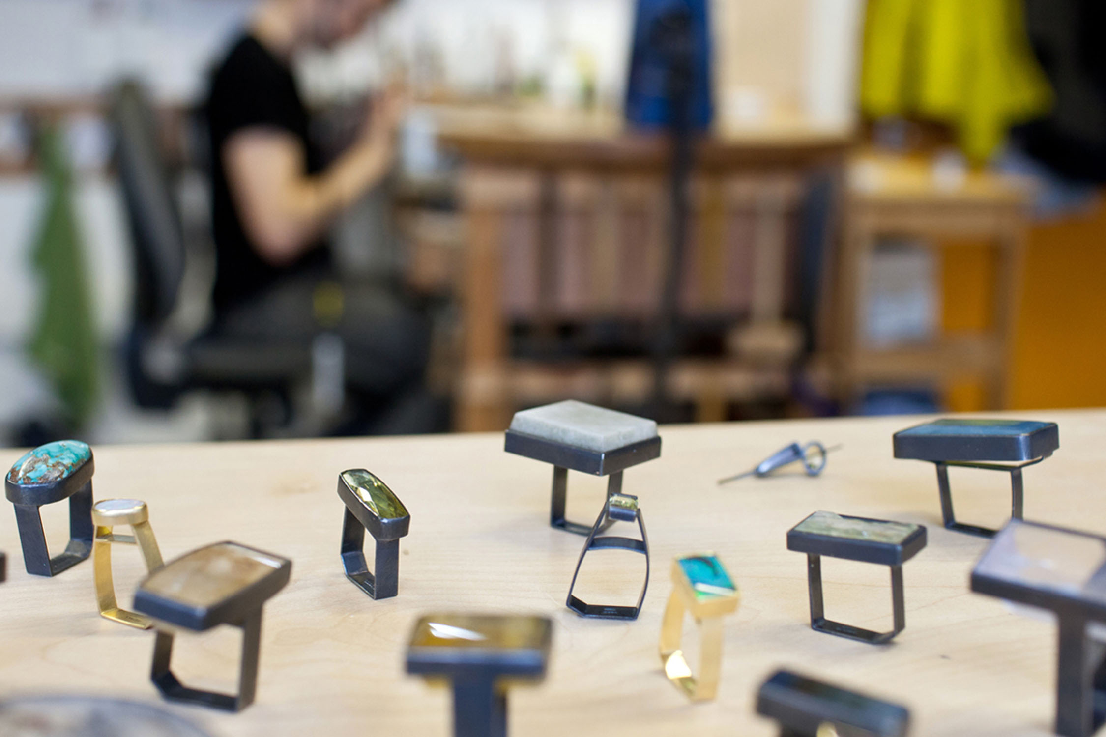 I love my studio at Exchange Place! It's probably a little large for a jeweller but it's so light and there's plenty of space for me to spread out, so I can work on lots of projects at once.