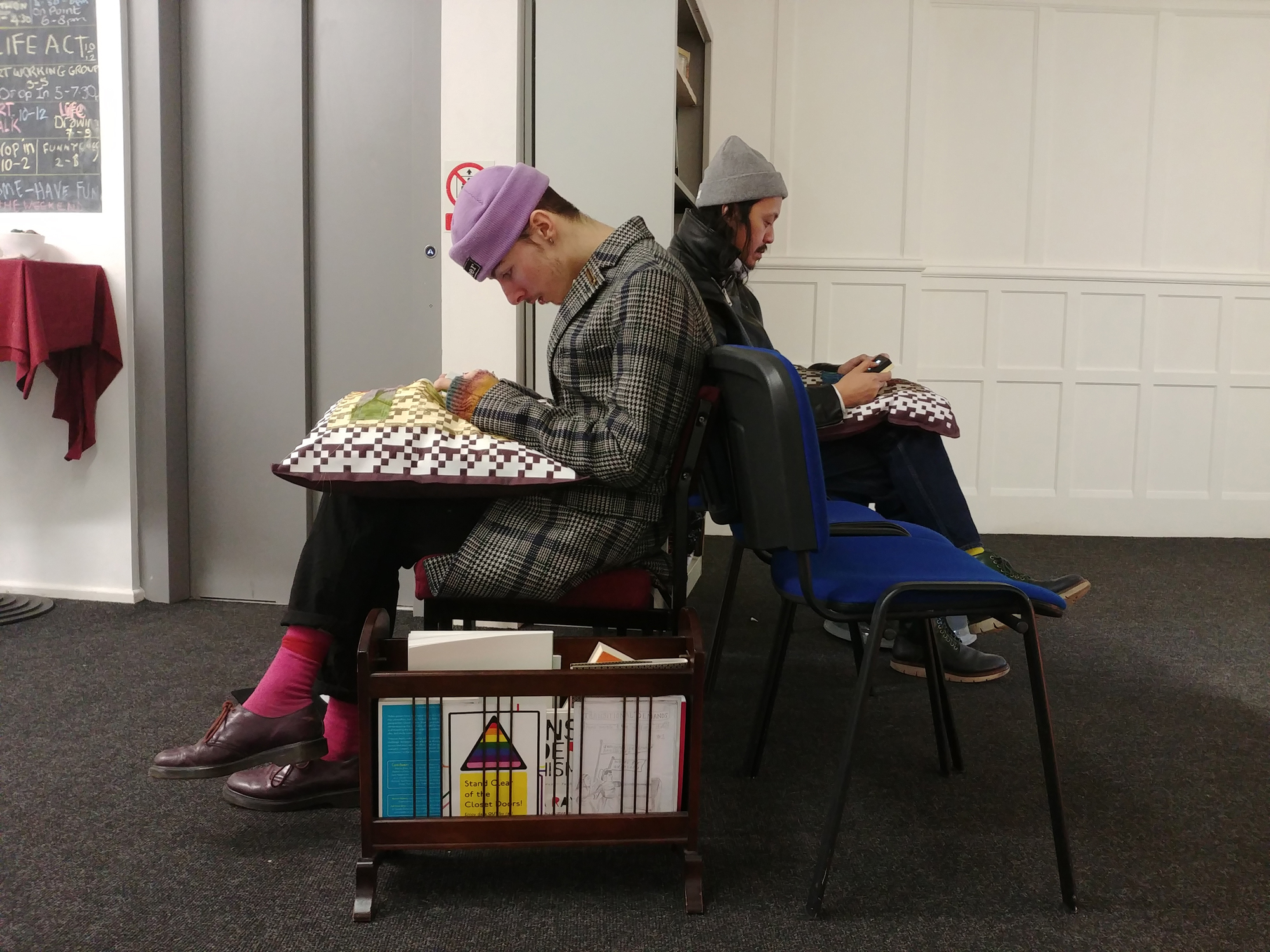 The other project I'm working on is longer-term. I’m interviewing transgender people around the UK about trans experiences of waiting – part of that is NHS waiting times, part of it is bureaucratic stuff, part of it is waiting for hormones to have enough of an effect to where you pass in day to day life, which might not actually happen, and part of it is waiting for society to change. For most trans people that I know, in order to be okay, we've had to change our relationship to waiting for things to be different, to live in the now and stop thinking of ourselves as unfinished. I want to represent that with a long piece of textile embroidered with people waiting in line, like a cyber-twee-queer-Bayeux Tapestry. I started the interviews at a residency in Belfast and I’m hoping to get 15 each from four locations, which the Freelands Programme really helps with because it's connected to three other places in the UK.