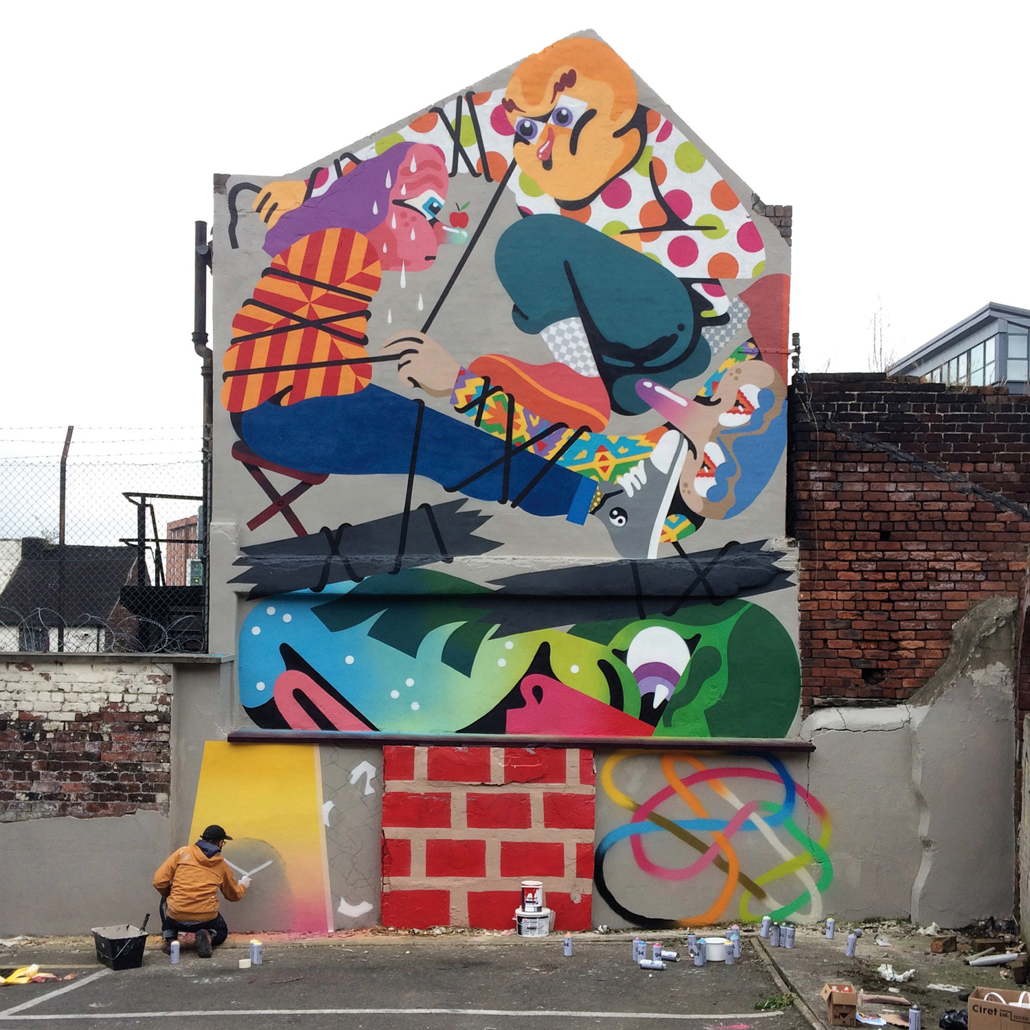 10. Follow Rockingham Street to West Street, turning right and then taking a left down Bailey Lane. The Spanish artist Nano 4814 left behind this bright, wacky, and slightly unsettling piece when he came to town as part of Feature Walls in 2016.