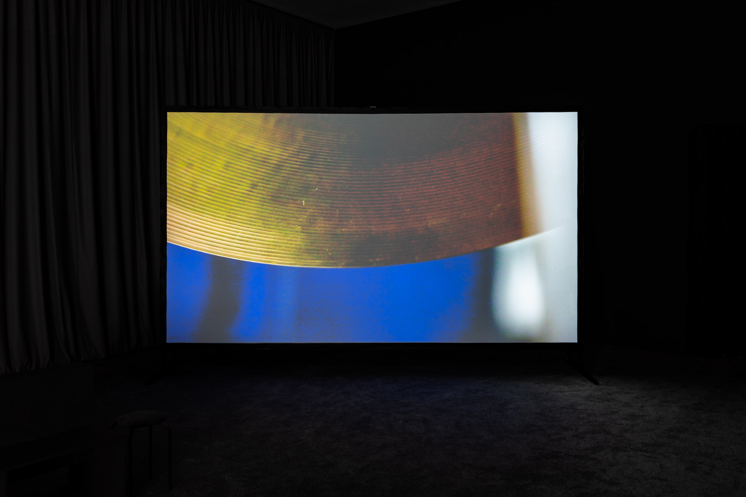 Haphazard seating is arranged in the centre, with screens of varying sizes enveloping you. Cushions and benches of different heights and levels all play into the improvisational nature of the space. Rather than feeling imposing, this arrangement reflects the mixed abilities of the work's contributors. The message is not immediately obvious, and it isn’t meant to be. Through interacting with these architectural arrangements, the struggle of Boakye-Yiadom’s project meets you where you are.