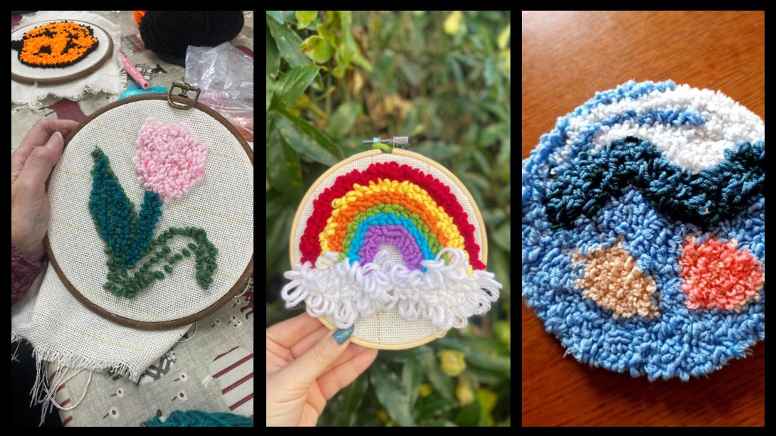 Amber Hessell runs Tuftingaround. She loves all things colour and texture and most importantly creating and teaching rug tufting and punch needle. Amber graduated from Huddersfield university in 2022 where she studied textiles and specialised in rug tufting. She has a little home studio in Sheffield and stocks some lovely independent shops with her own creations.