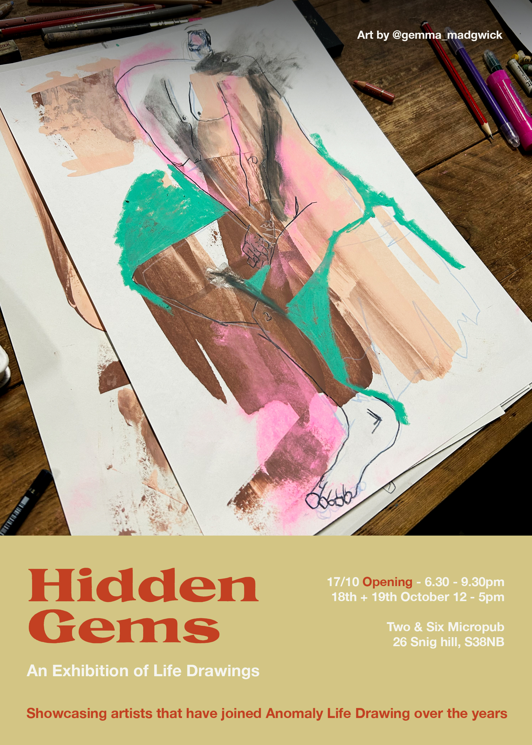 An exhibition celebrating the incredible talent and creativity of artists who have taken part in Anomaly Life Drawing sessions over the years. Featuring a diverse range of styles, techniques, and personal approaches to life drawing, Hidden Gems offers a vibrant and inspiring snapshot of artistic expression in all its forms.