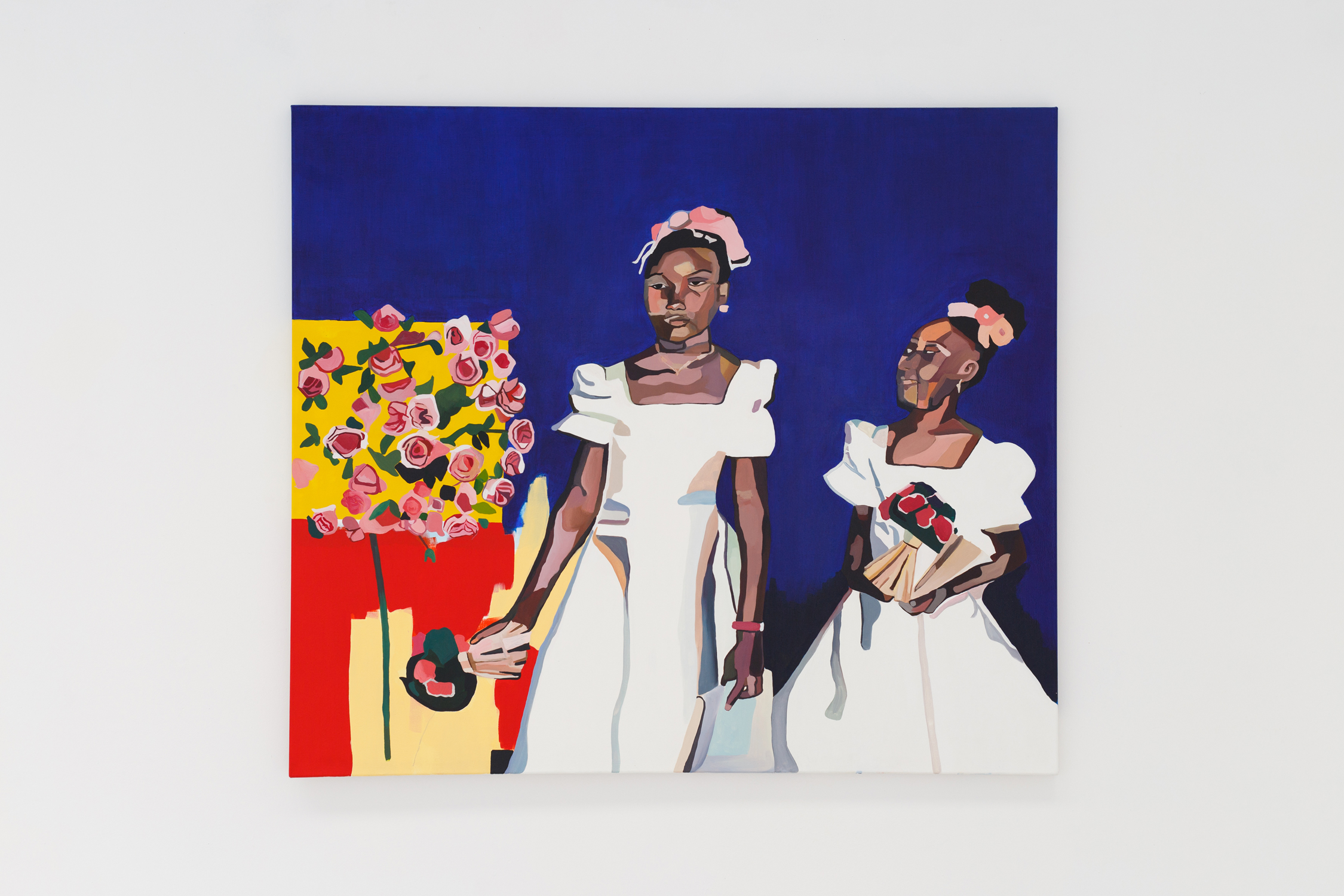 However, Labinjo’s large-scale paintings capture a domesticity long overlooked by western art as she is British-Nigerian and seeks to create space for black communities to narrate their own experiences. In several of the paintings, backgrounds are replaced by block colour, so instead of trying to place the subjects in a time or a place, we are invited to focus solely on the features and expressions of the human being. The faces of her subjects are captivating, and the careful use of colour and shadow creates movement; a woman in red looks mid conversation, whilst a bridesmaid looks mid strop.