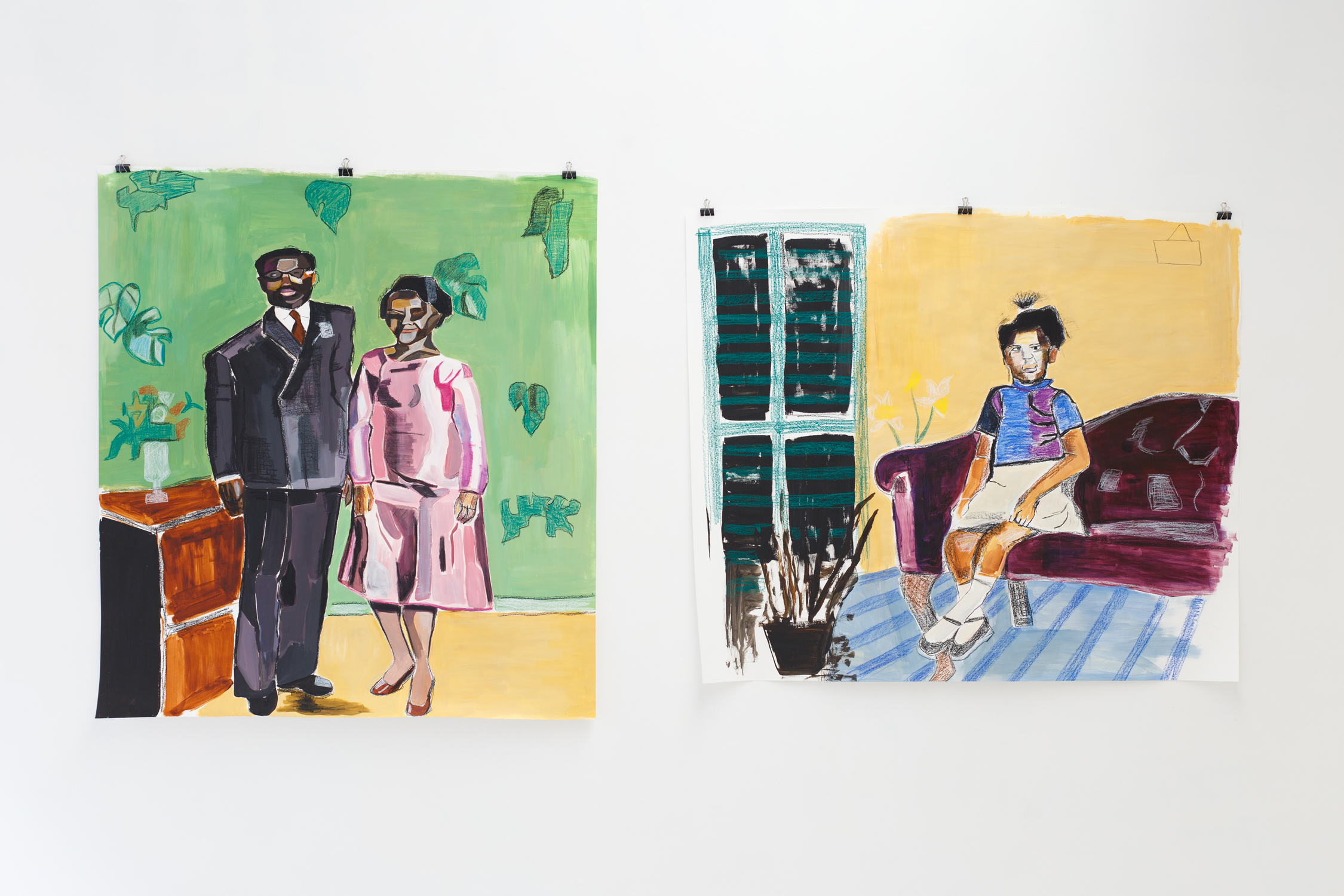 Labinjo started using family albums as her source material when she was studying her BA in Fine Art at Newcastle University, but for As We Were she blends family figures with found images from popular culture and Instagram. The trick is, she doesn’t reveal who’s who in the title of the works which largely remain untitled. In fact, the only way you’d find out that Man Drinking Coffee is Labinjo’s father is if the curator happens to tell you. This removal of titles and the combination of personal and impersonal subjects creates an accessible array of faces with numerous possible identities, unaffected by any preconceived notions of who they might be.
