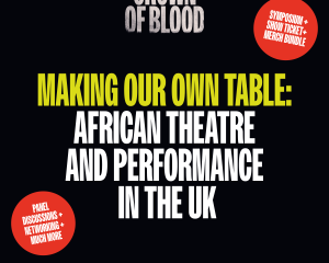 STANDARD ticket: Making Our Own Table symposium entry + Crown of Blood show ticket + Utopia t-shirt (please email reception@utopiatheatre.co.uk with your desired size)