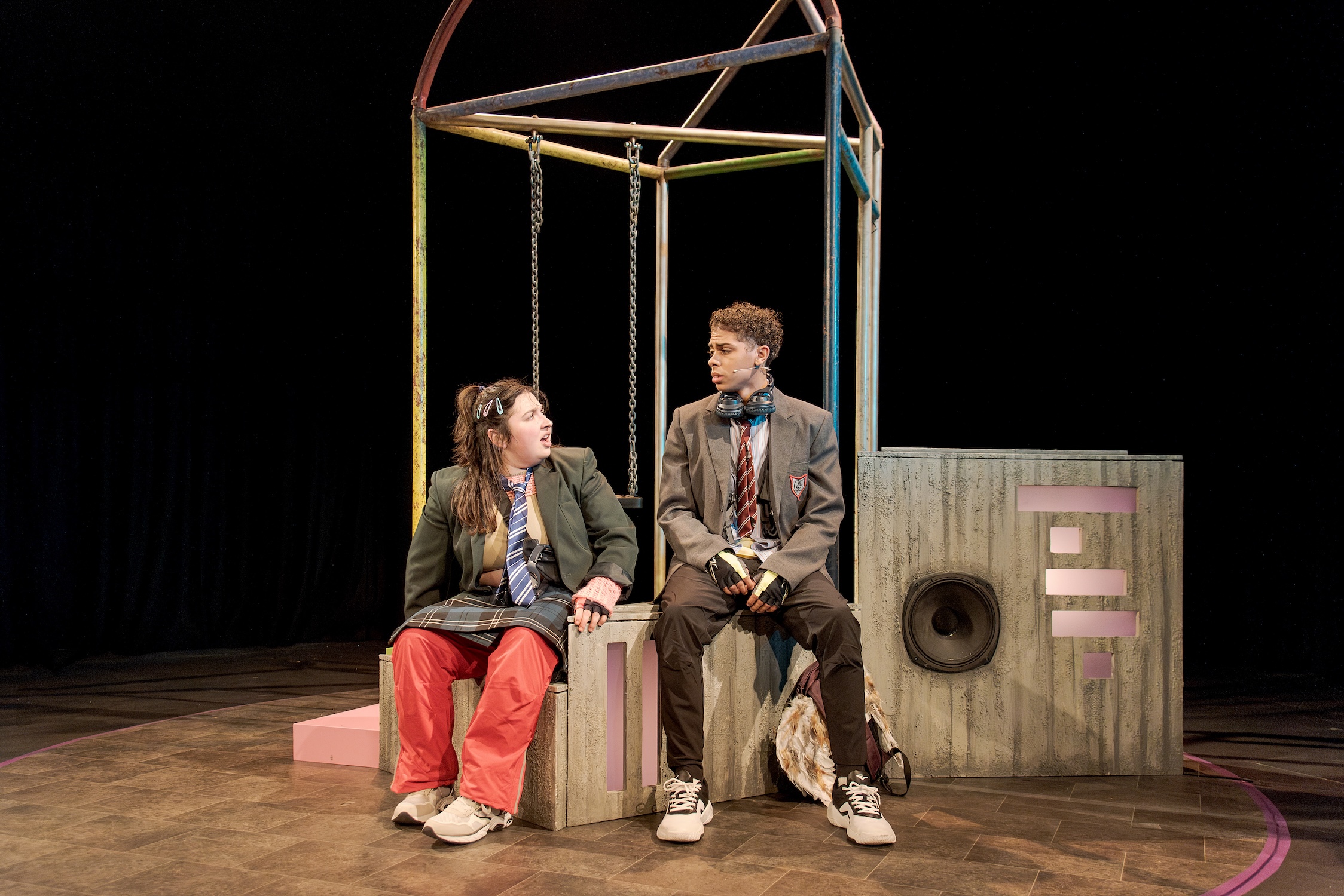 My Brother’s A Genius is the effervescent creation of playwright, Grime-poet, multi-disciplinary artist, neurodivergent academic and pro-raver Debris Stevenson. A collaboration between Sheffield Theatres, Theatre Centre and the National Youth Theatre, the play is a multisensory experience developed through conversations with hundreds of young people across the UK. Its care for neurodivergent youth is evident in the production’s ethos of accessibility.