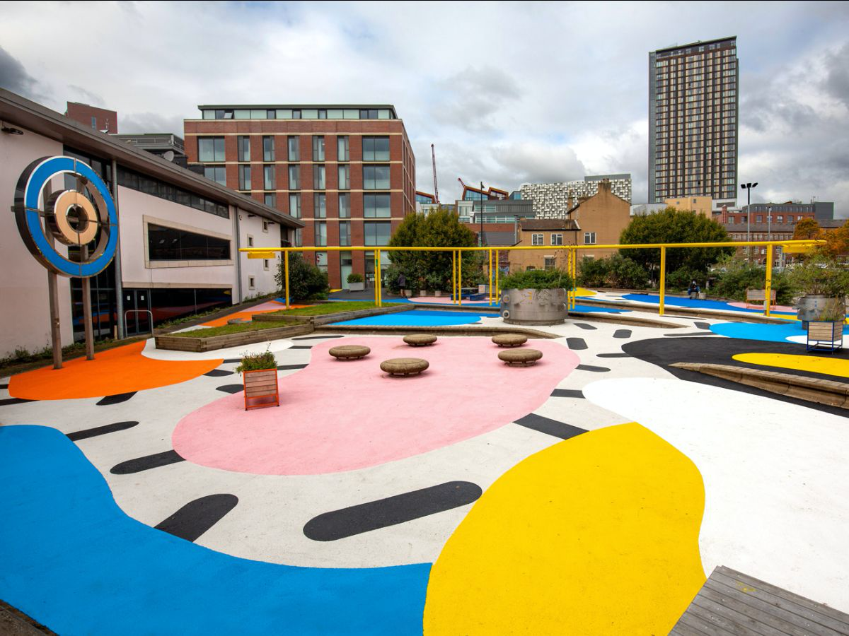 In 2020, artist Florence Blanchard transformed a fairly empty public square in Sheffield city centre into a playful, 1000-square-metre painting.