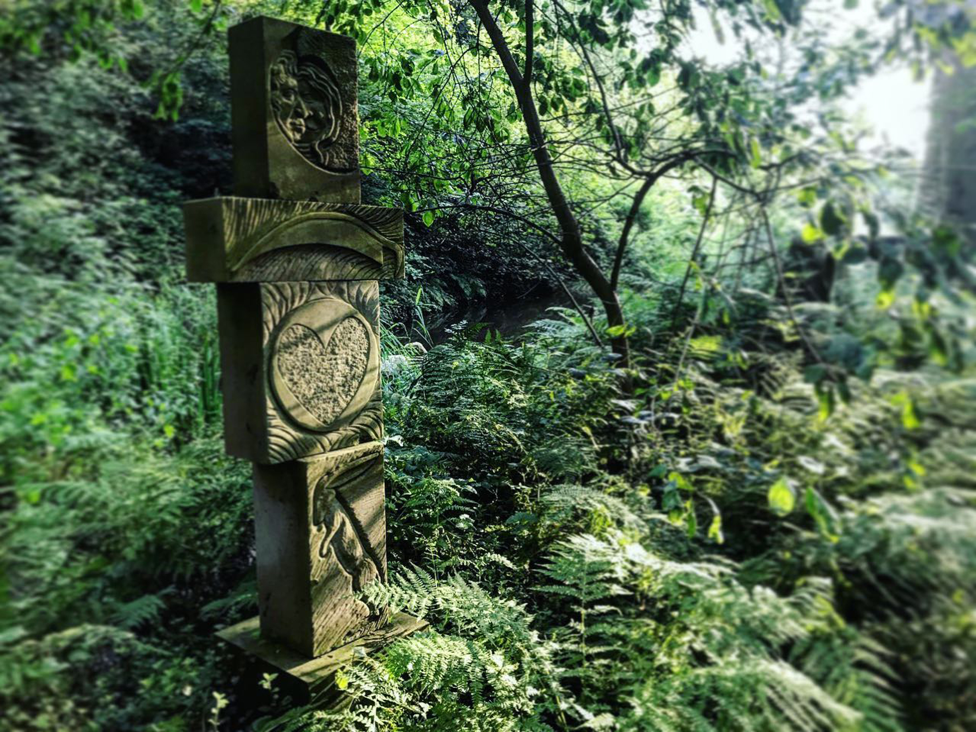 For years I have been intrigued by a strange carved face in the wall on Storrs Lane as I passed it in the car. I saw the curious name Stoneface begin to appear online too. It turns out that Stoneface is actually Andrew Vickers, a sculptor who was once a dry stone waller. And his open days in the ancient Storrs Wood are becoming legendary.