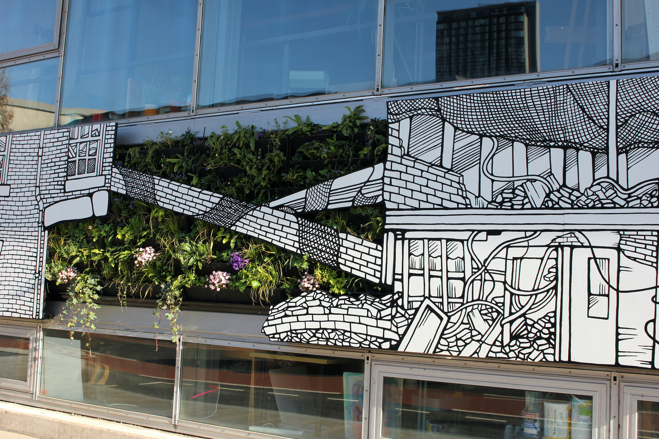 The outer wall of Persistence Works is quite literally alive with art. Titled Growing City, a 32-metre-long mural along the front of the building is a collaboration between artist Jo Peel and horticulturist Professor Nigel Dunnett. Created in 2020 with support from Yorkshire Artspace and City of Ideas.